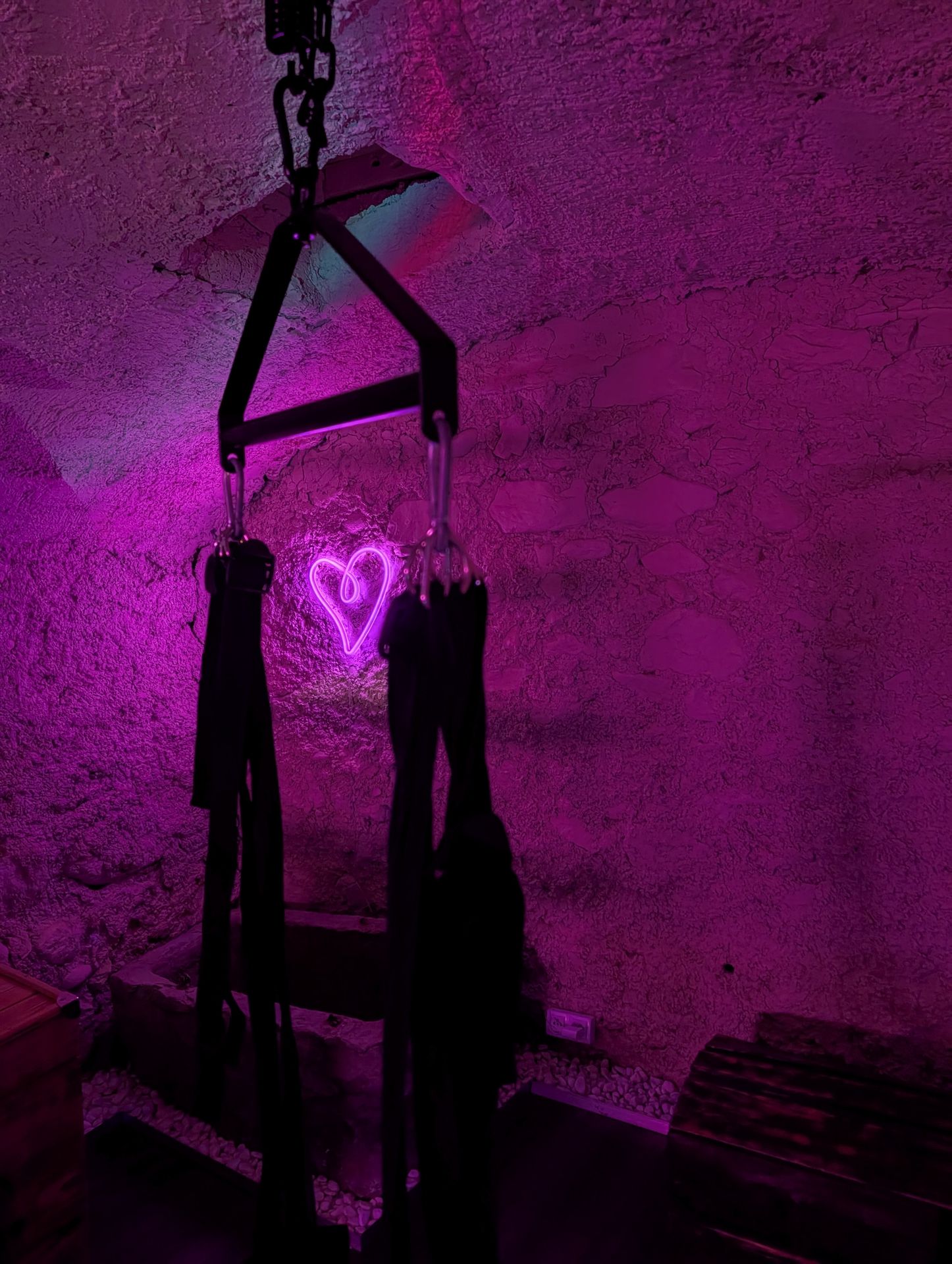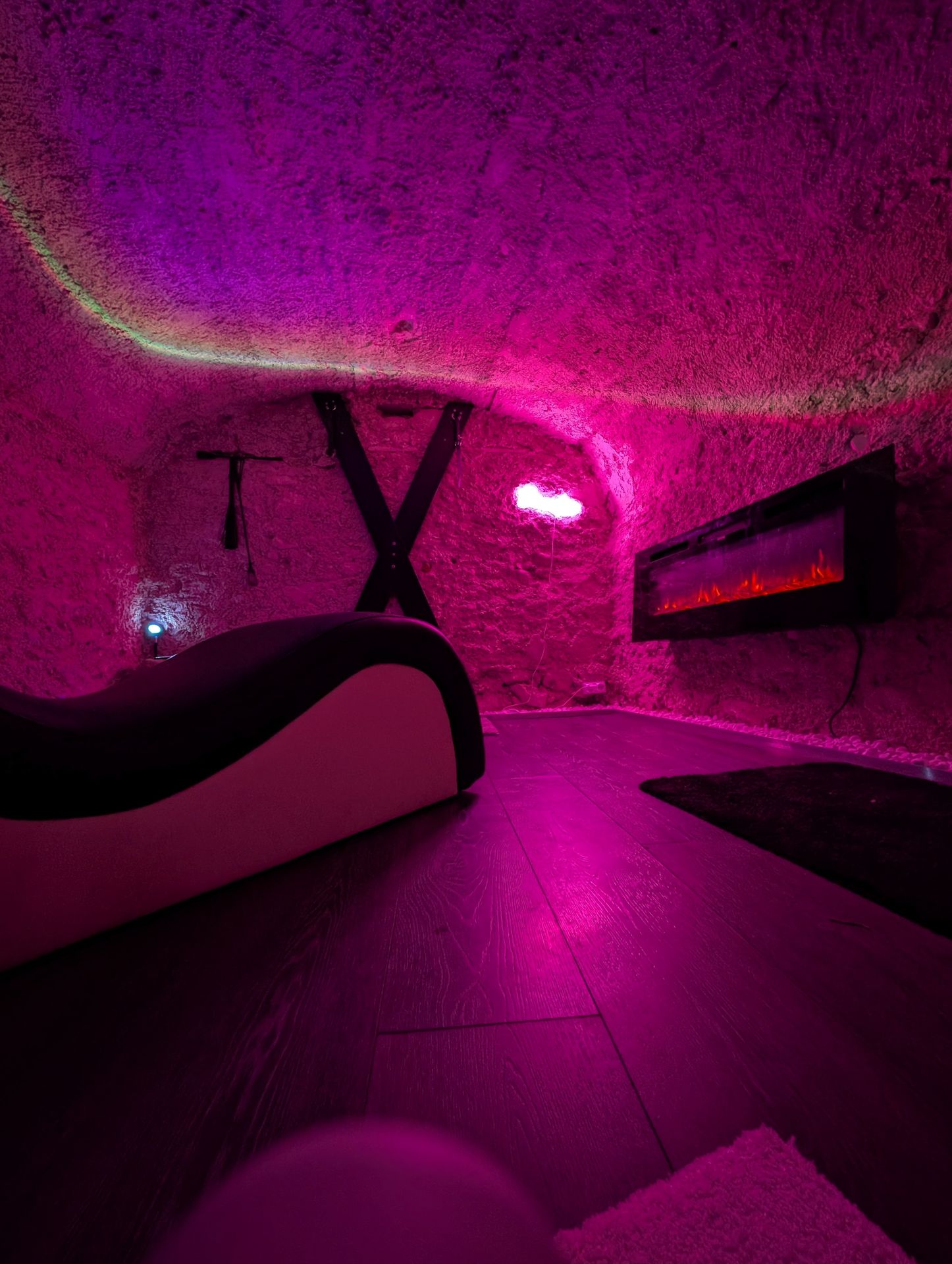 - Une pièce secrète équipée d'accessoires coquins tels que la croix de St André, d’une chaise érotique, d’une balançoire et bien d’autres surprises pour éveiller vos sens.